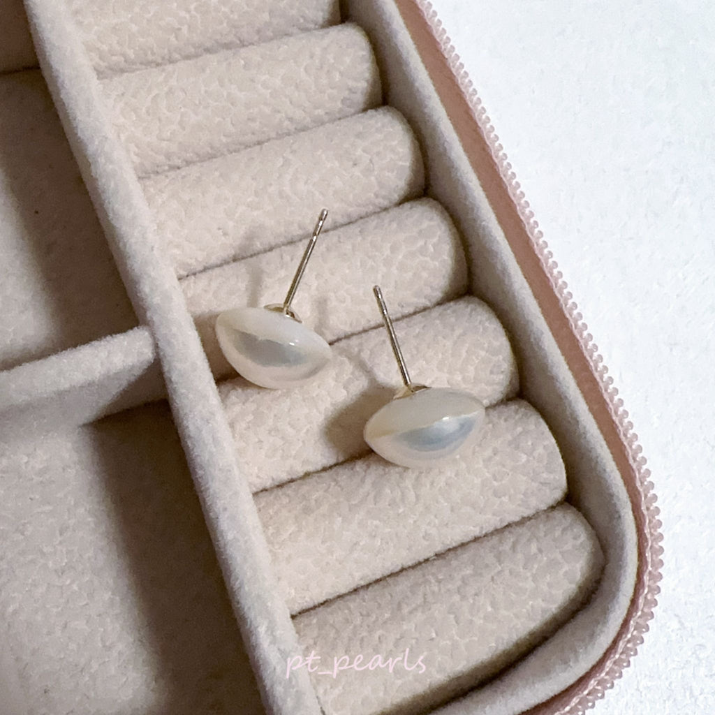 📍11-12mm 極光幻彩粉紫 方形馬貝耳環