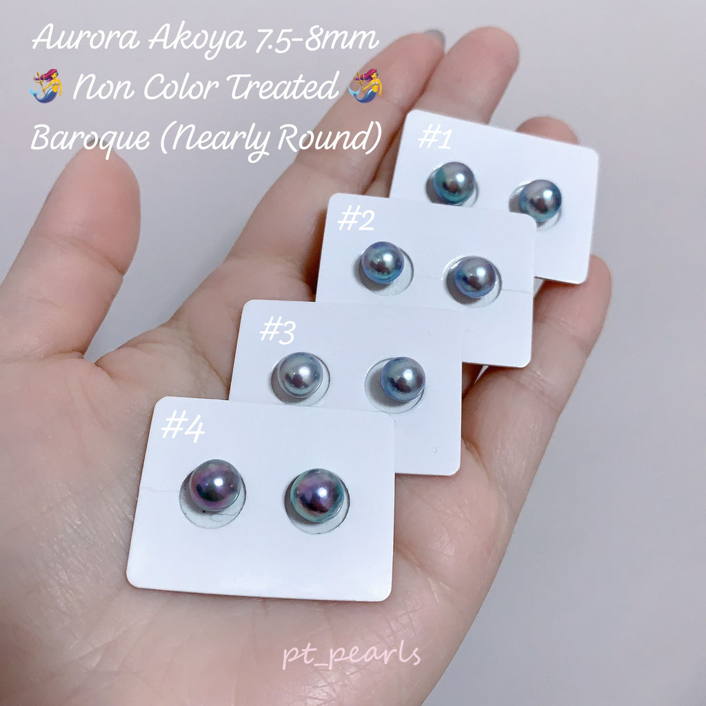 Aurora Akoya Baroque Mermaid Color Non Color Treated 7.5-8mm Earrings, Highly recommended 🌟🌟🌟