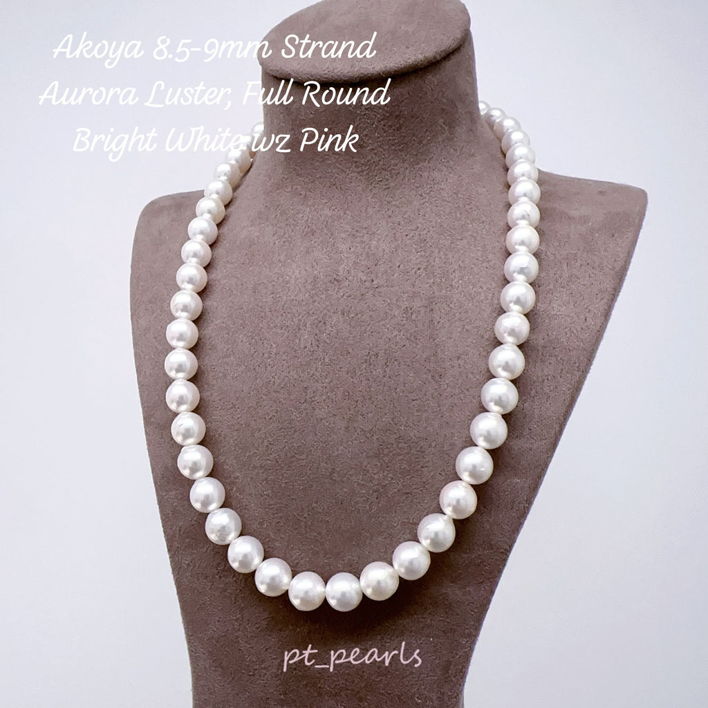 極光 Akoya 亮白帶粉 8.5-9mm 珠鏈 | Aurora Akoya White w/ Pink 8.5-9mm Pearl Strand