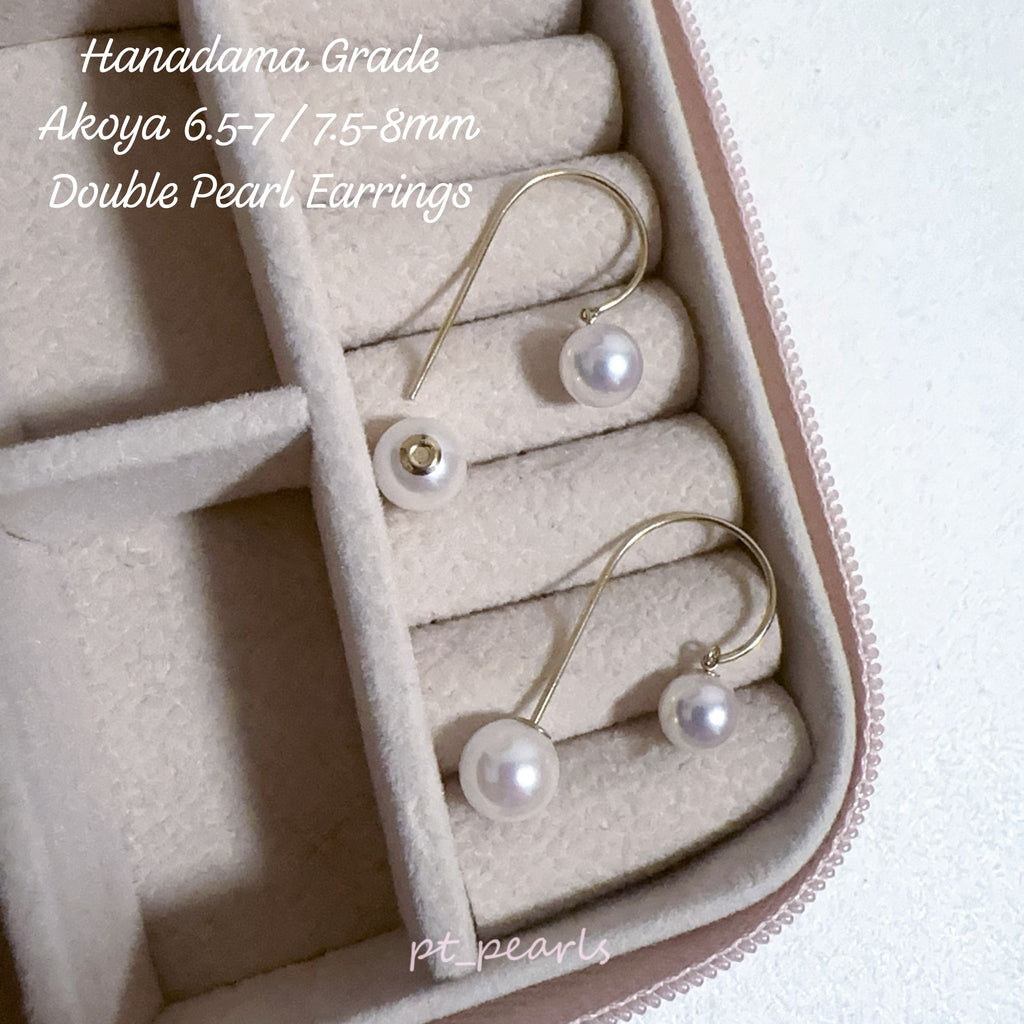 📍Hanadama Grade Akoya 6.5-7 / 7.5-8mm Double Pearl Earrings