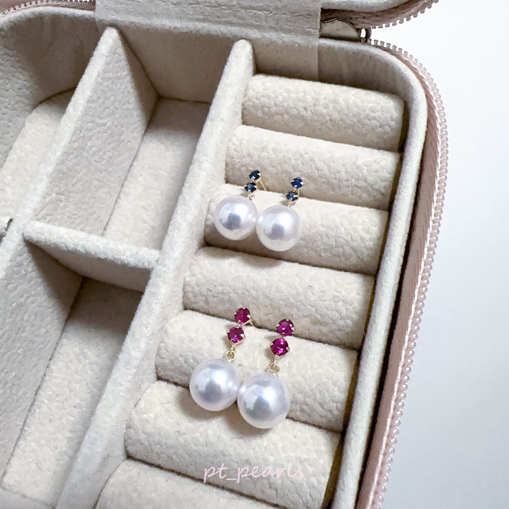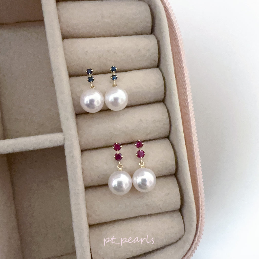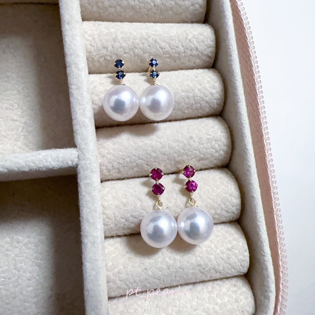 花珠級 Akoya 配寶石耳環 | Hanadama Grade Akoya Earrings with Sapphire