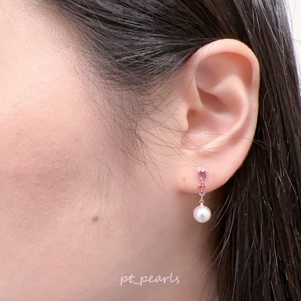 頂級濃粉 彩凜品質Akoya 6.5-7 配18K半寶石耳環 | Top Grade Sailin Grade Deep Pink Akoya 6.5-7mm Earrings with 18K Gemstones Setting
